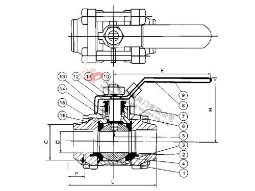 Q61F三片式對(duì)焊球閥結(jié)構(gòu)圖