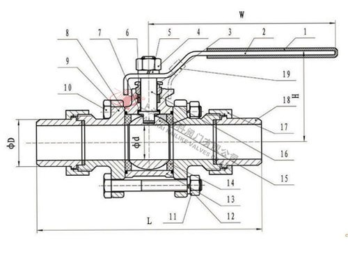 Q21F三片式活接對(duì)焊球閥結(jié)構(gòu)圖