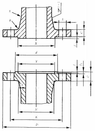 凹凸面整體鑄鋼管法蘭(JB/T79.2-94) PN10.0MPa單位: mm